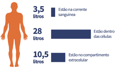 Um adulto de 70kg tem 70% do seu corpo constituído de água, ou seja, em média 42 litros de água.